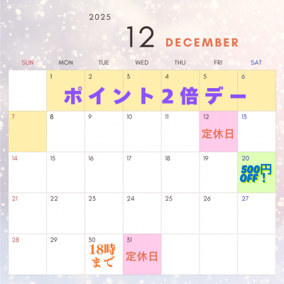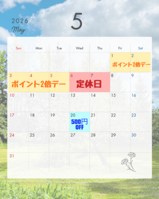 | 定休日 | 不定休(店舗にお問い合わせ下さい) |