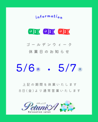 | サロン名 | Relaxation salon PetuniA -ペチュニア- |
