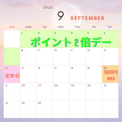 9月のイベント& 定休日のお知らせを致します(^^♪